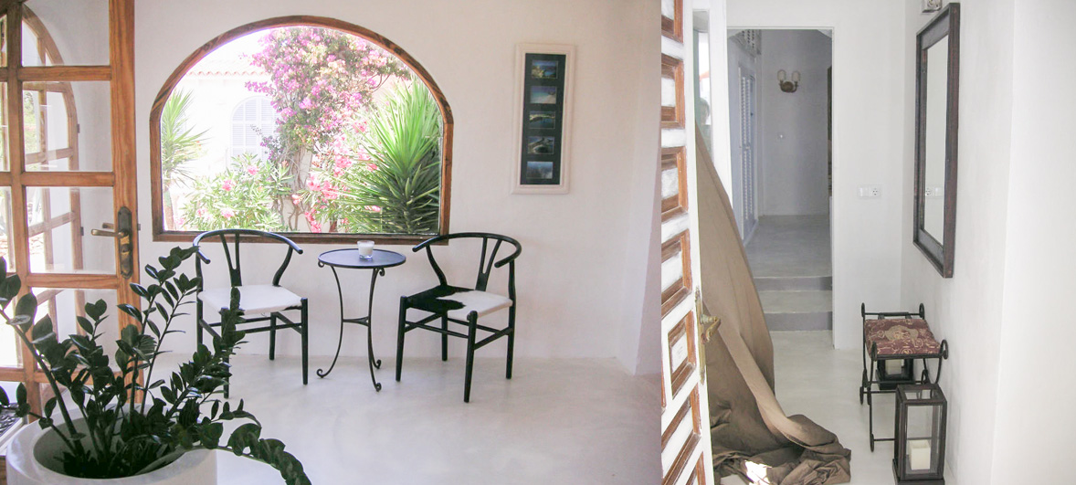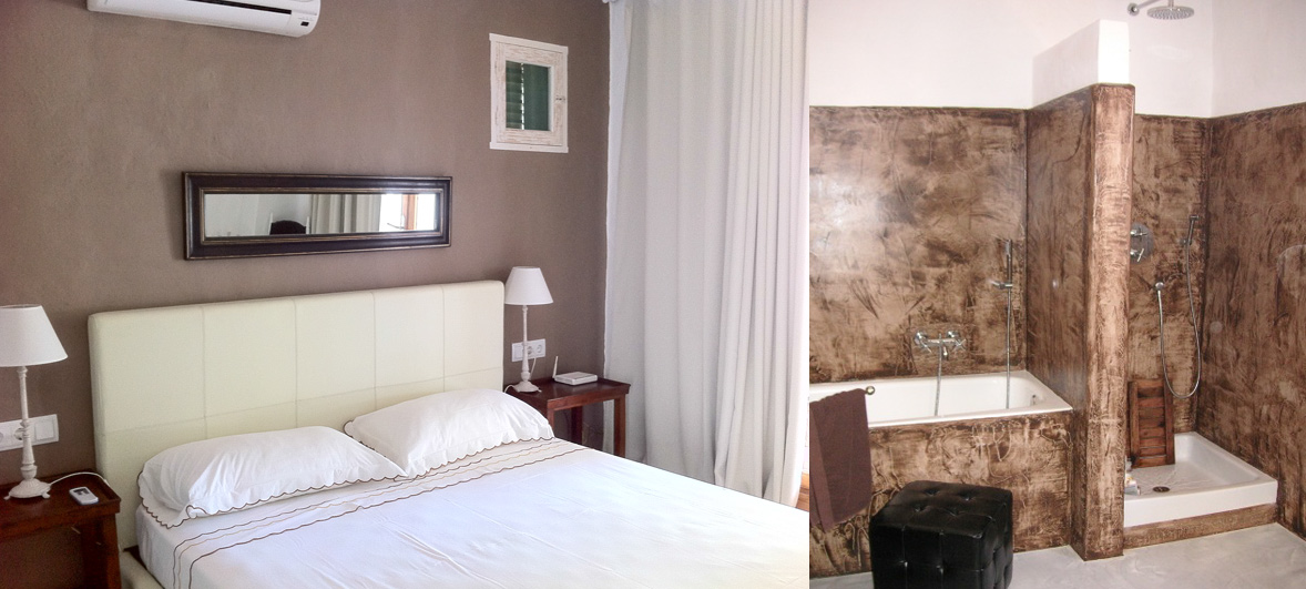 Can Pujols is tastefully decorated in neutral colours and furnished in a contemporary style. The house consists of a spacious living room with TV & Wifi, dining room with seating for 8, fully equipped kitchen, sunny terrace, and four double (queen) bedrooms. Three bedrooms have air-conditioning and en-suite bathrooms, all with showers. The forth double bedroom is independant to the house, outside in the garden also with private bathroom, perfect for those wanting their own private space.
