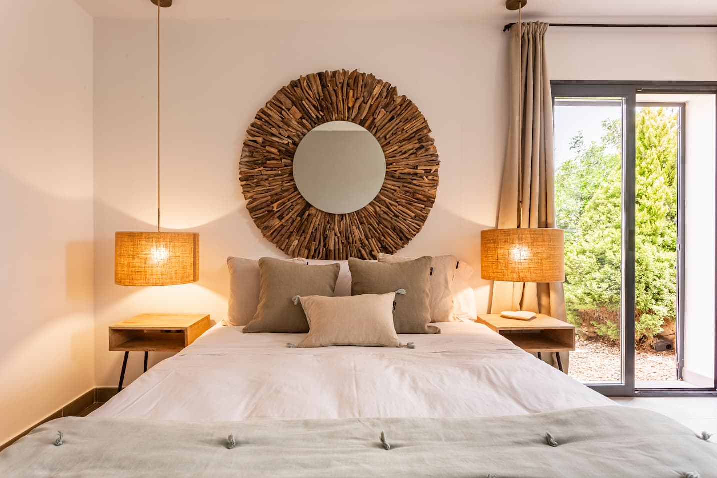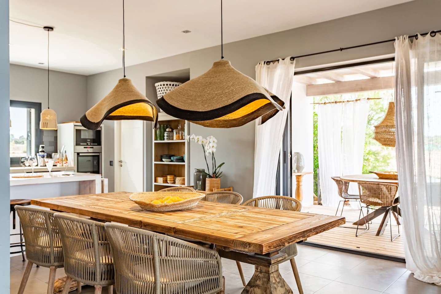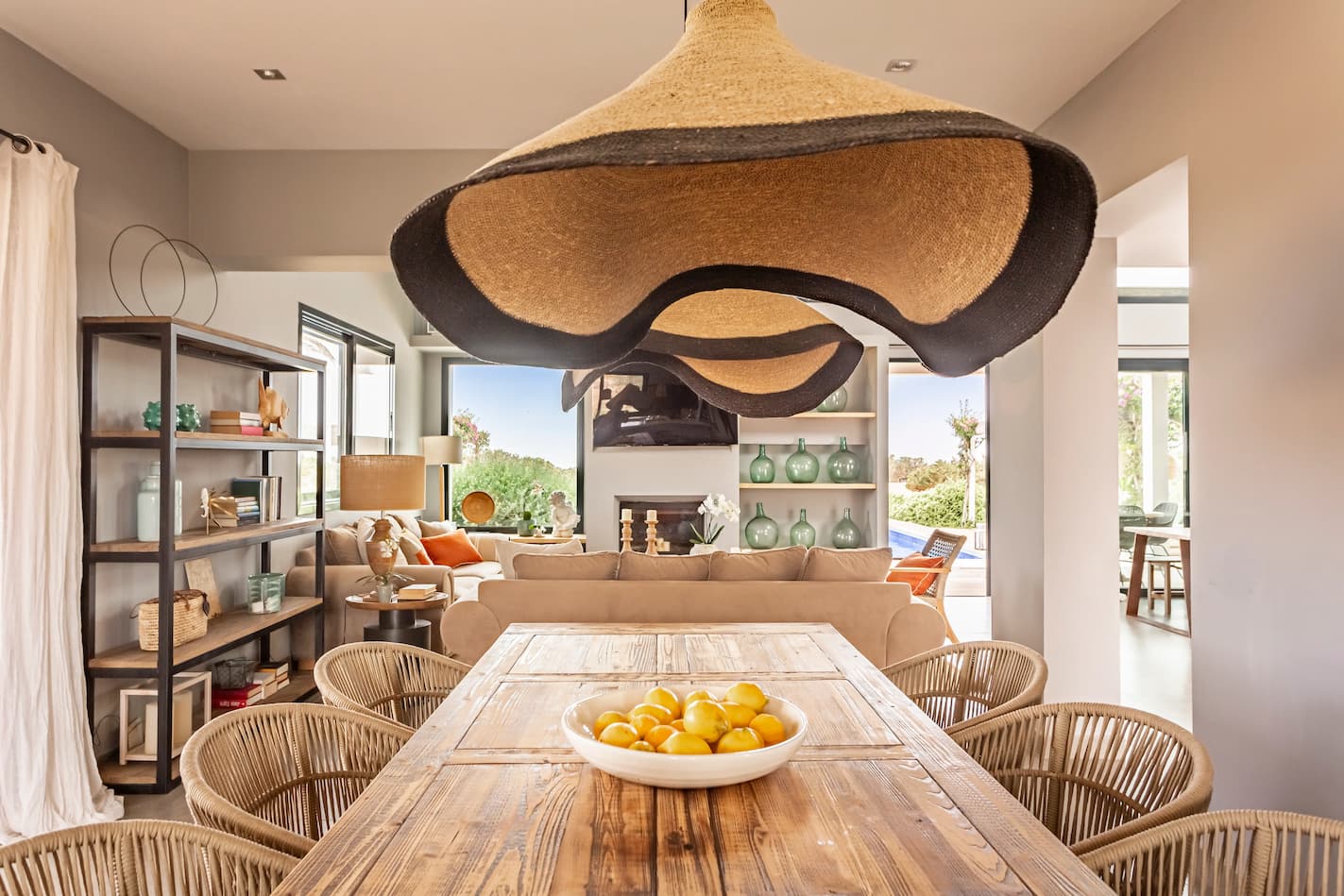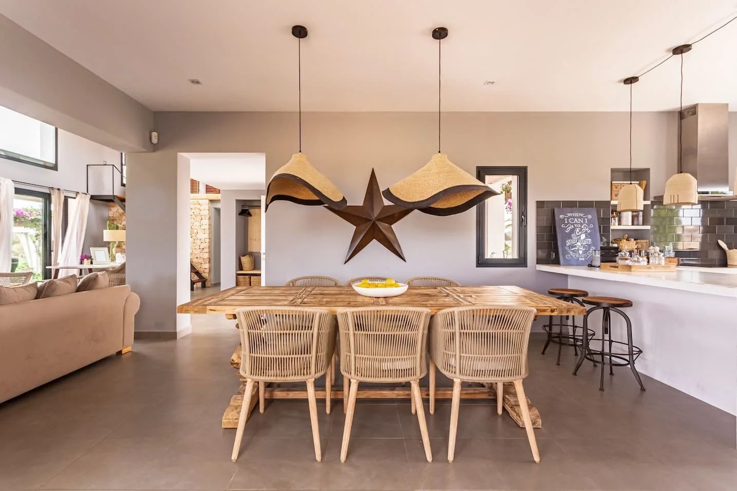 Dine alfresco on the terrace which is equipped with a bbq, table and benches; perfect for watching the famous Formentera sunsets. Relax on the exquisitely decorated terrace overlooking the pool, perfect for a leisurely breakfast . The garden is filled with the calming aromas of rosemary and lavender. In the centre of the garden is a large swimming pool with Pergola, chill out area with tables and sofas, along with the relaxation area with loungers and cushions.Â