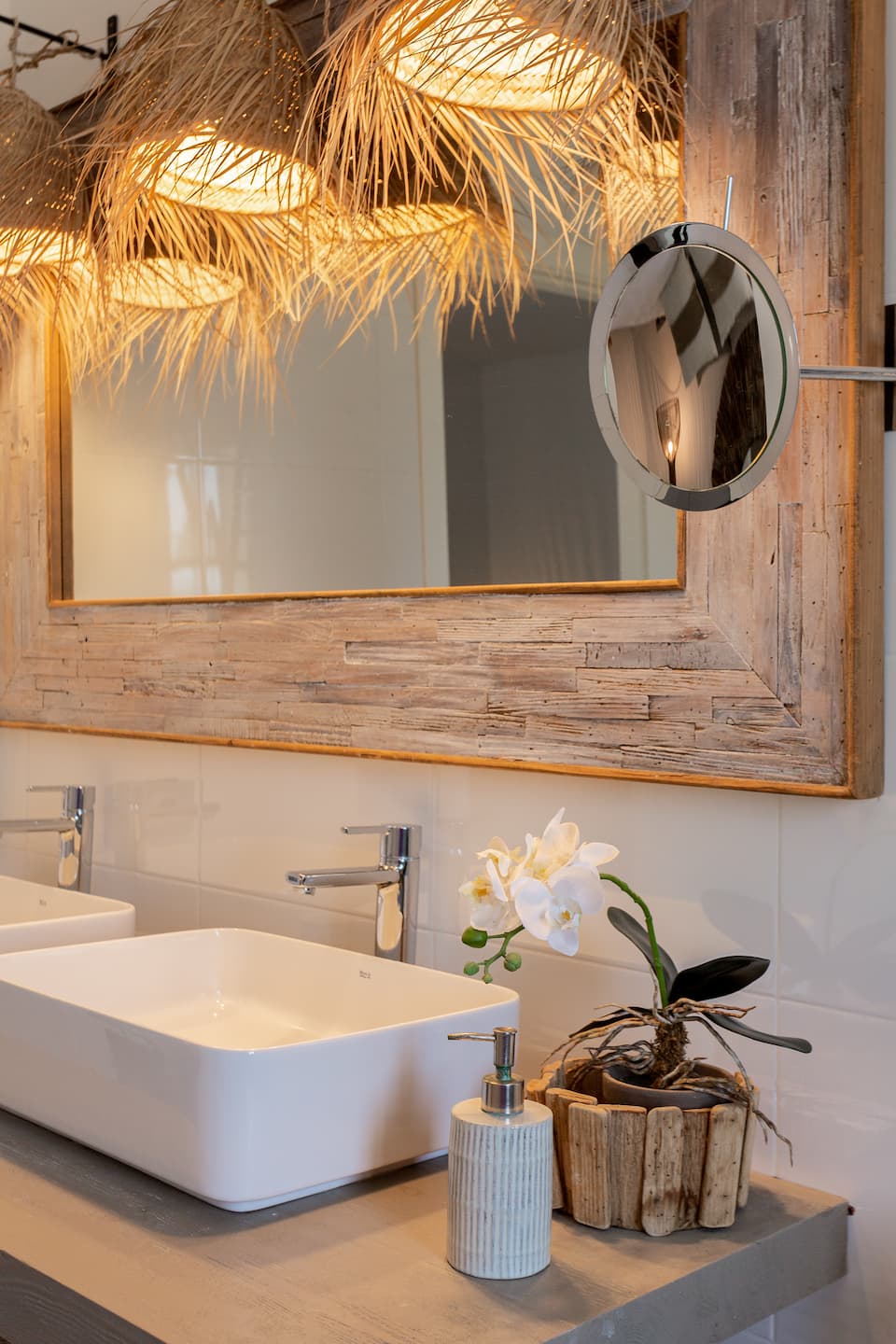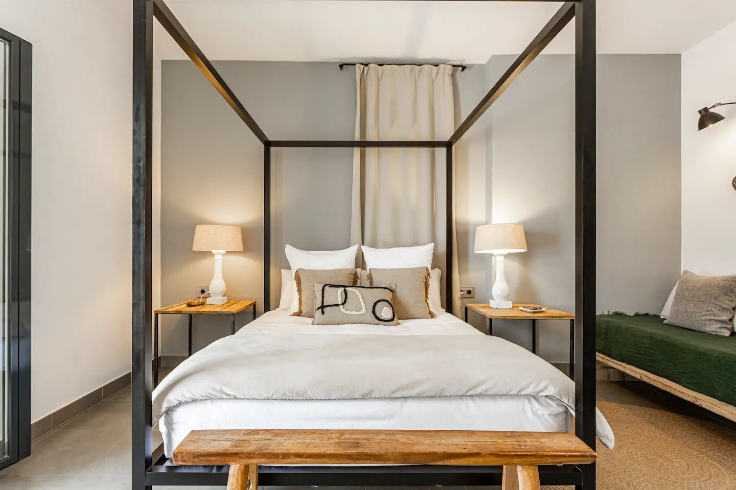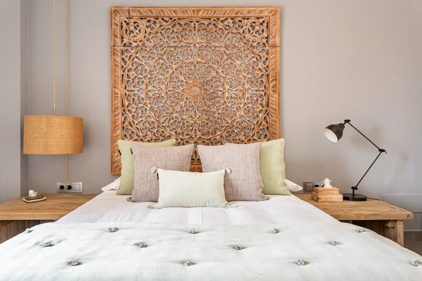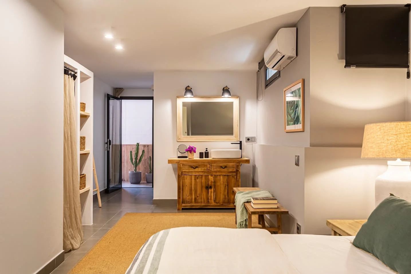 Dine alfresco on the terrace which is equipped with a bbq, table and benches; perfect for watching the famous Formentera sunsets. Relax on the exquisitely decorated terrace overlooking the pool, perfect for a leisurely breakfast . The garden is filled with the calming aromas of rosemary and lavender. In the centre of the garden is a large swimming pool with Pergola, chill out area with tables and sofas, along with the relaxation area with loungers and cushions.Â