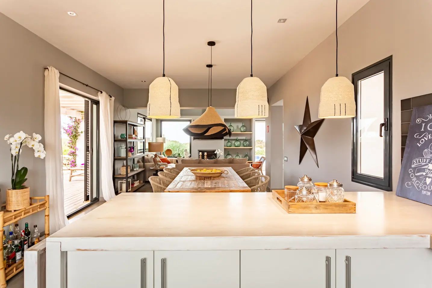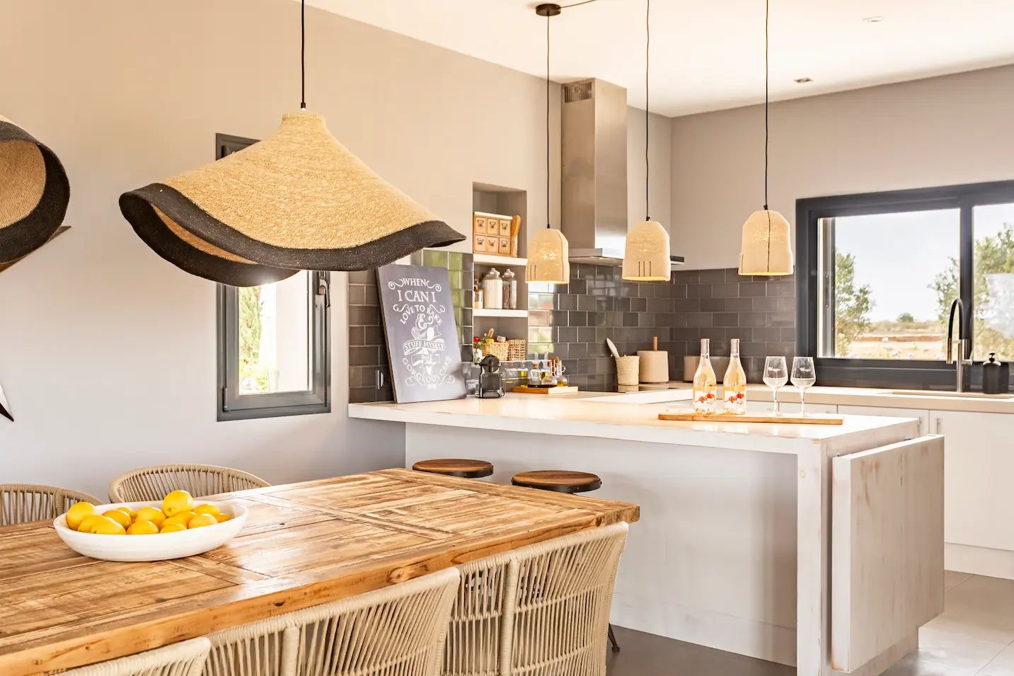 Freshly decorated and designed with elegance, the quality of the fittings and furnishings in the house are excellent. Passion and thought have clearly gone into this project to make a dream come true. Located between vineyards, it has an idyllic setting with views over to Faro de la Mola and the island of Ibiza. At night, the light of the lighthouse illuminates this gem of a property.