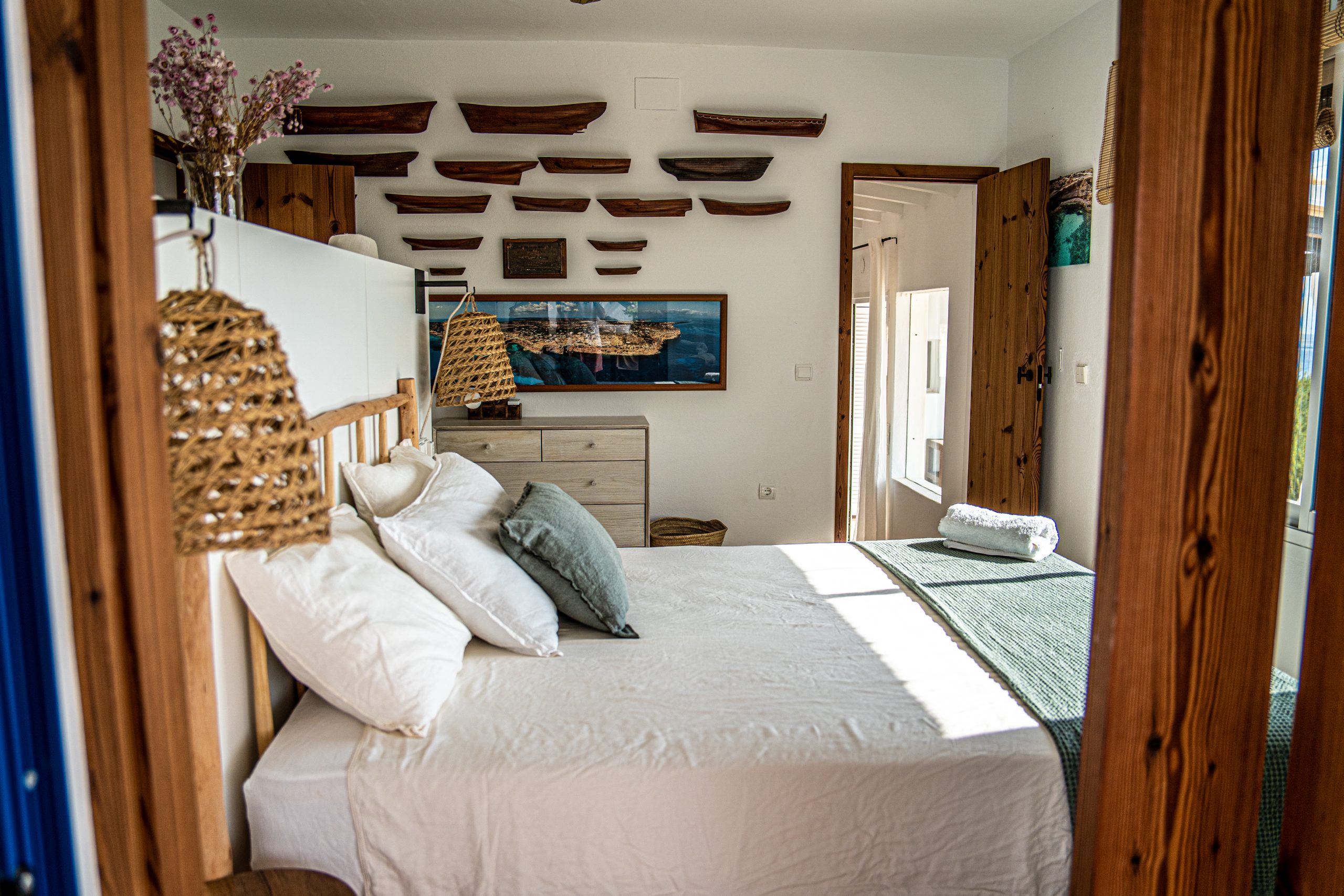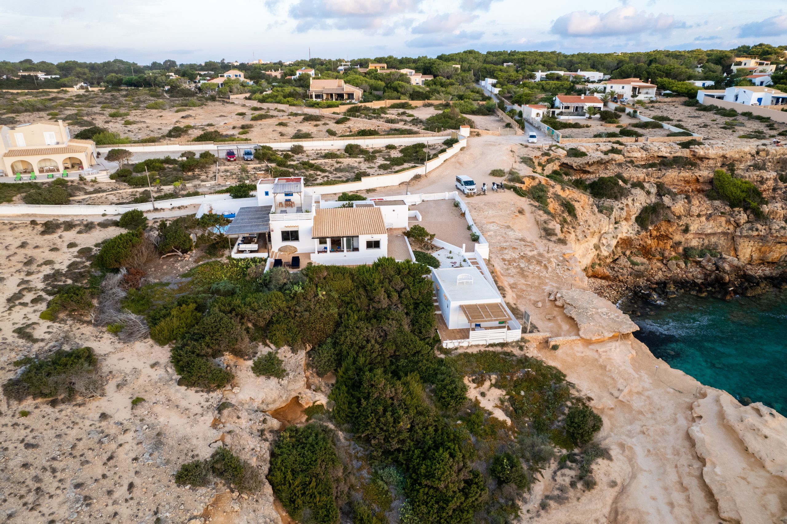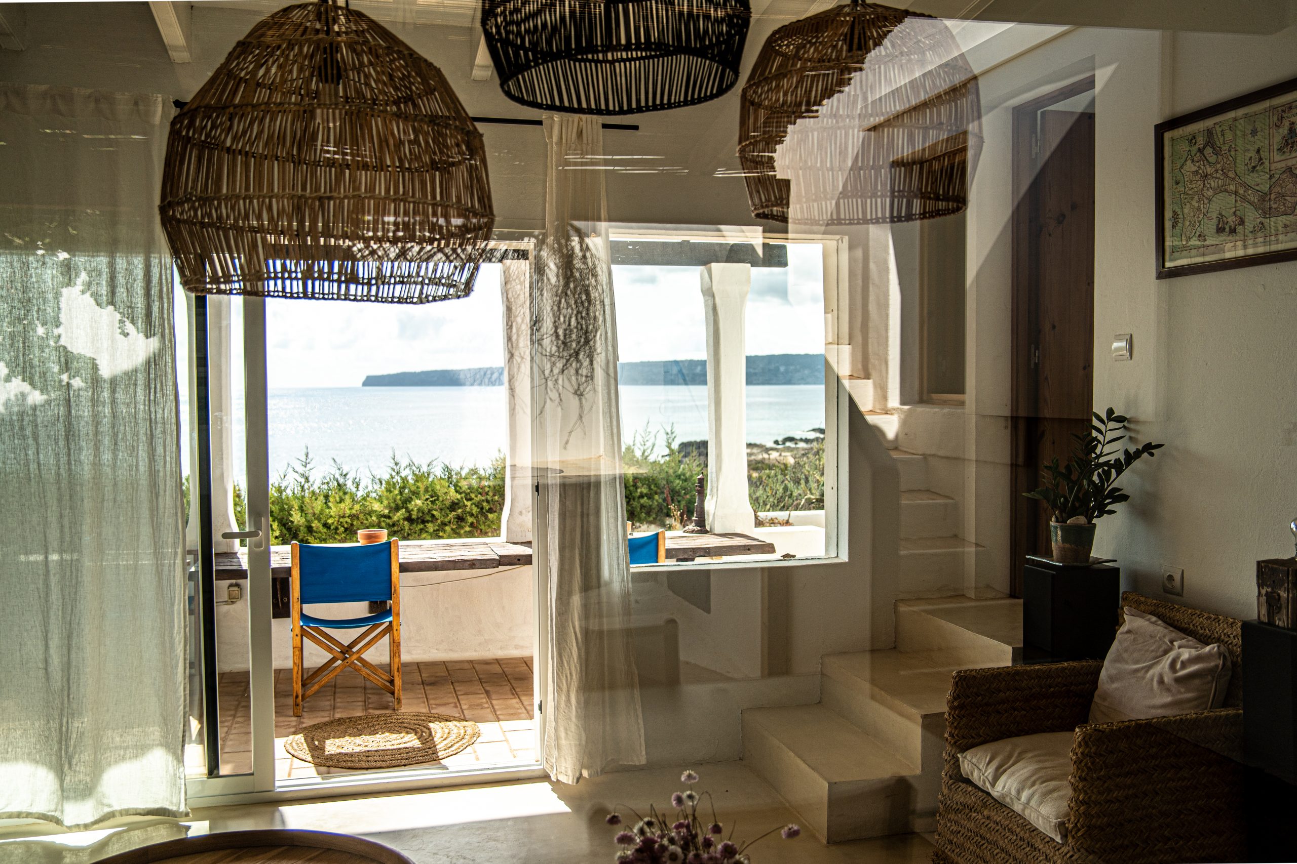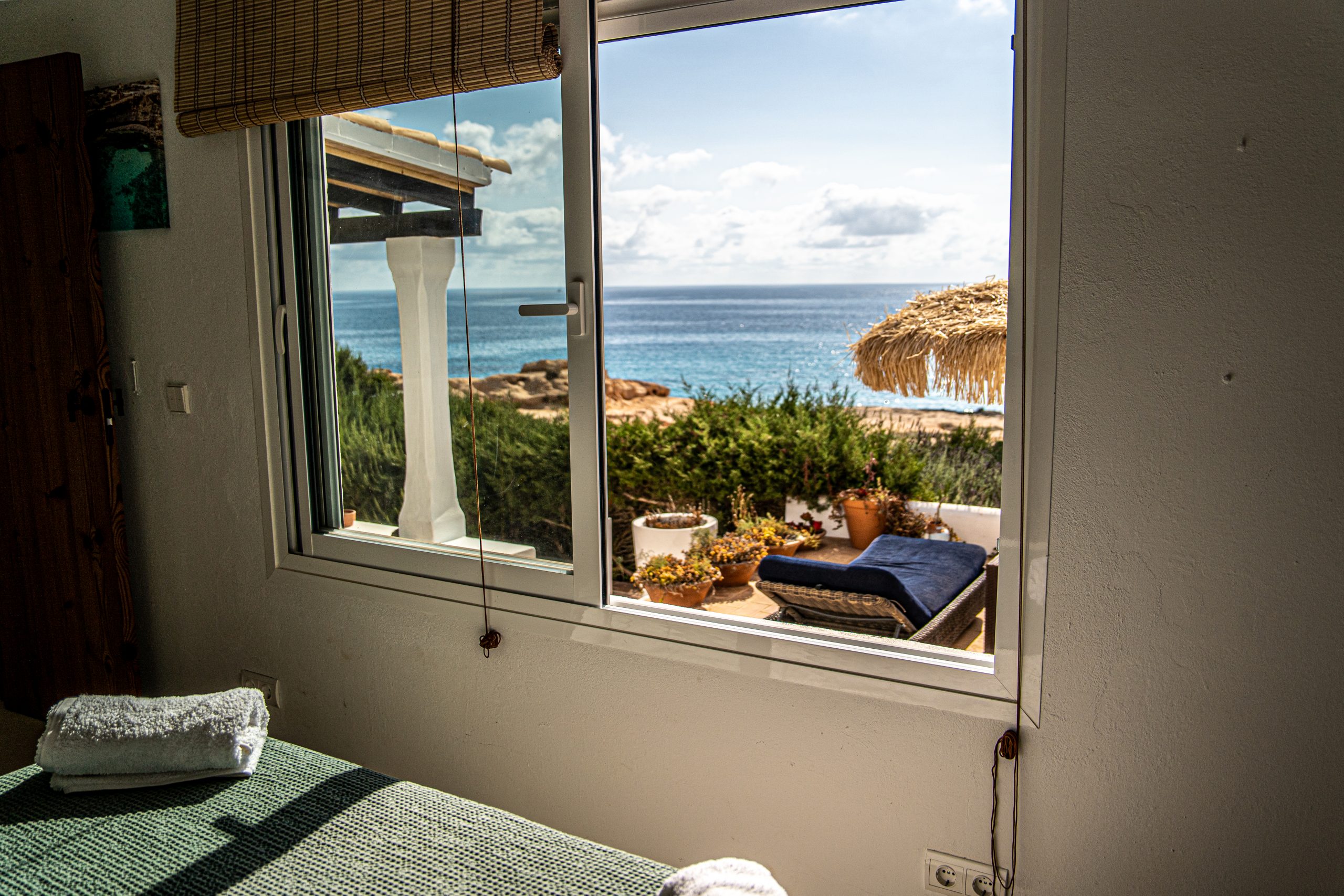 Located on a cliff with direct access to the sea, the old fisherman’s refuge, and just a few minutes walk from the beach of Les Valetes and Carratge. Also not far from other spectacular beaches. The closest town is 5 minutes away which is Sant ferran with shops, banks, restaurants etc.