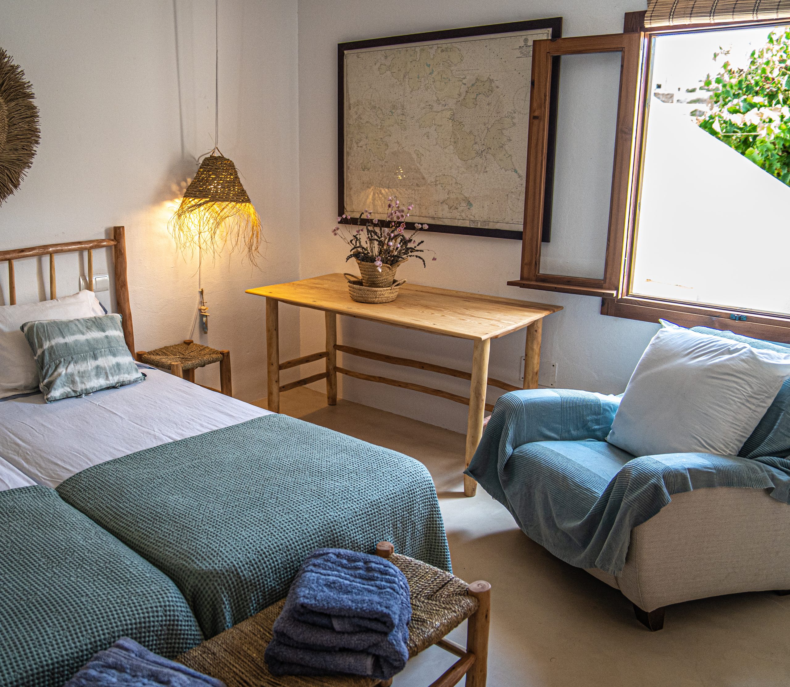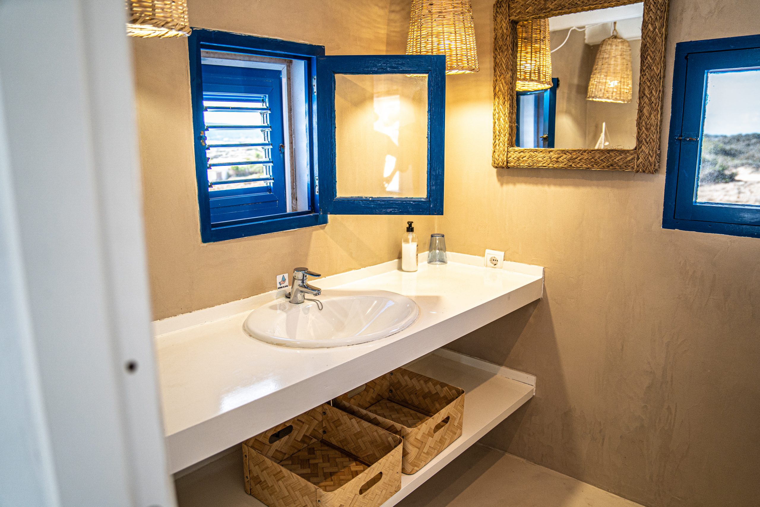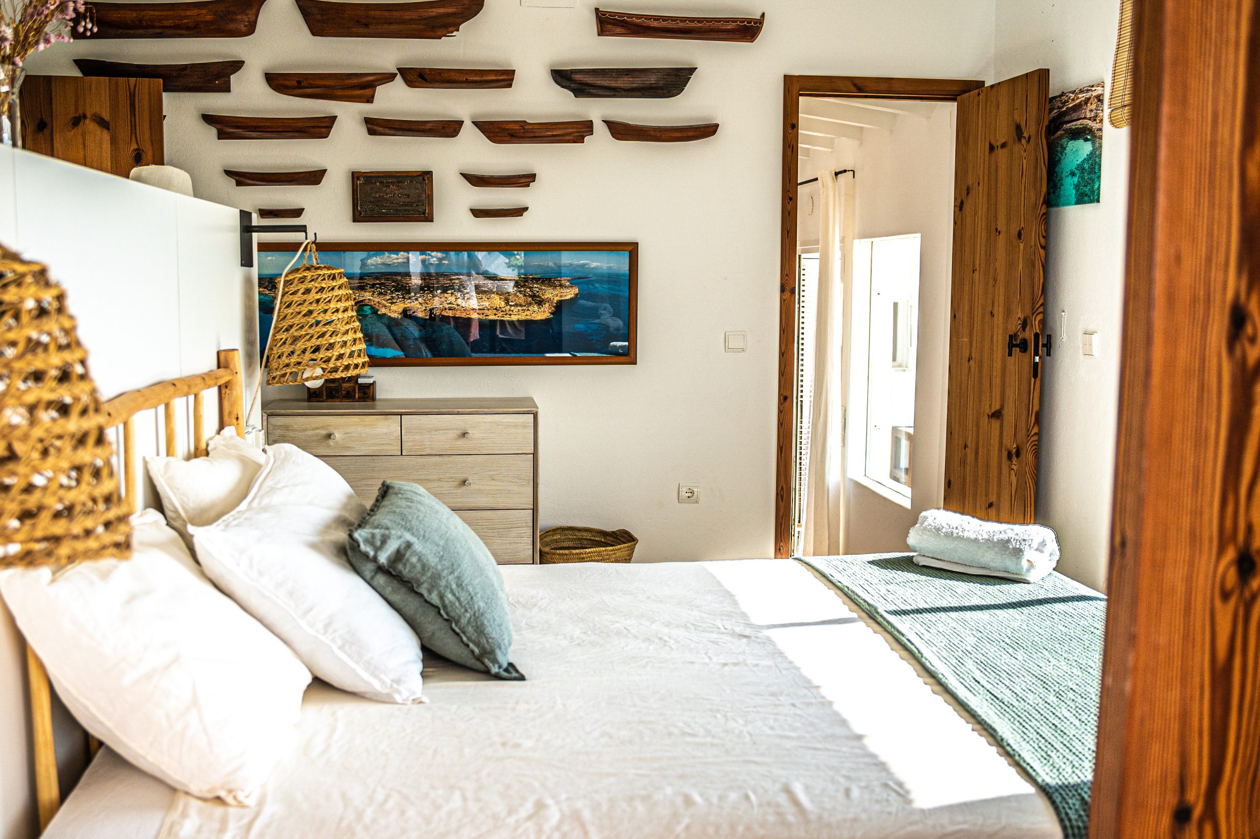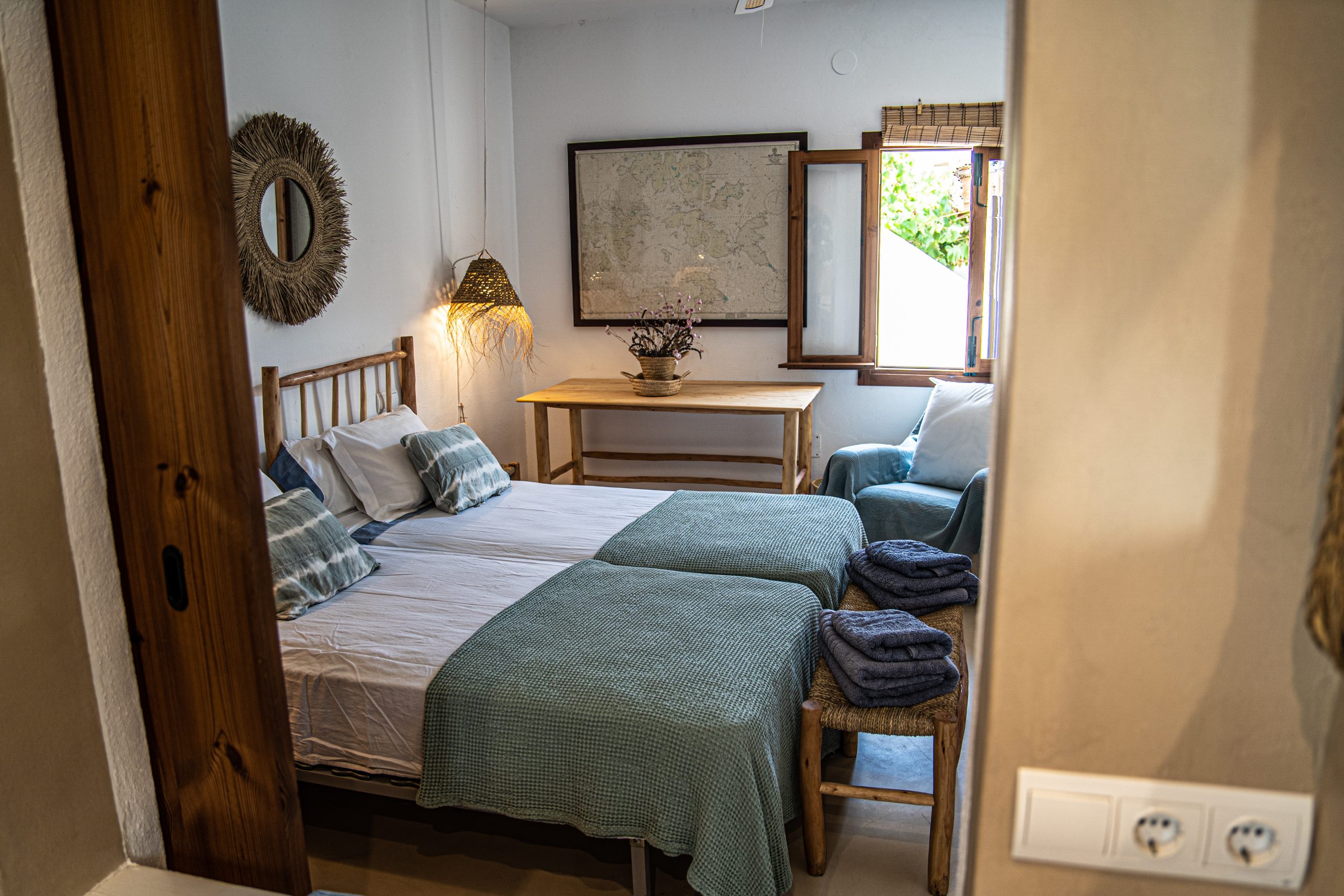 Located on a cliff with direct access to the sea, the old fisherman’s refuge, and just a few minutes walk from the beach of Les Valetes and Carratge. Also not far from other spectacular beaches. The closest town is 5 minutes away which is Sant ferran with shops, banks, restaurants etc.