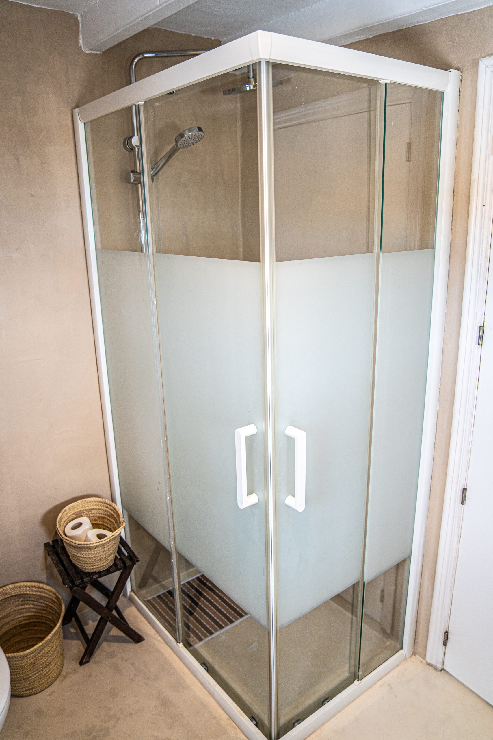 Set over two floors, the house has 3 bedrooms & 3 bathrooms: