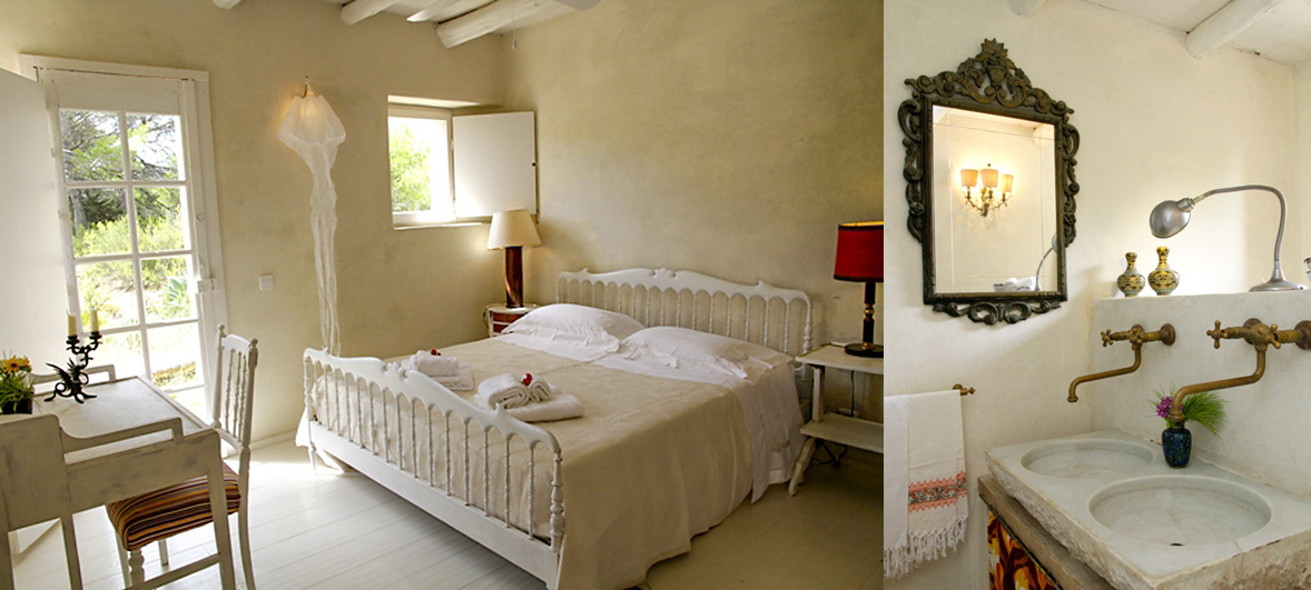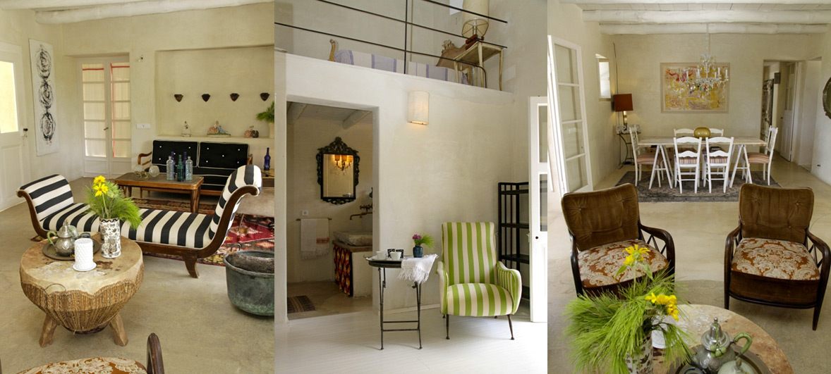 The design and layout of the villa is based on the traditional rural dwellings of the Balearics. All of the fixtures are originals, acquired in different parts of Europe, and attentively restored. Casa Can Parra also hosts many distinguishing features such as the ceiling beams, which are old telephone poles, the floors are polished cement or wood, the sinks of the kitchen and bathrooms are marble and all of the furniture is select vintage with numerous works of art adorning the walls. These unique features bring a wonderful authenticity and welcoming feel to the house.