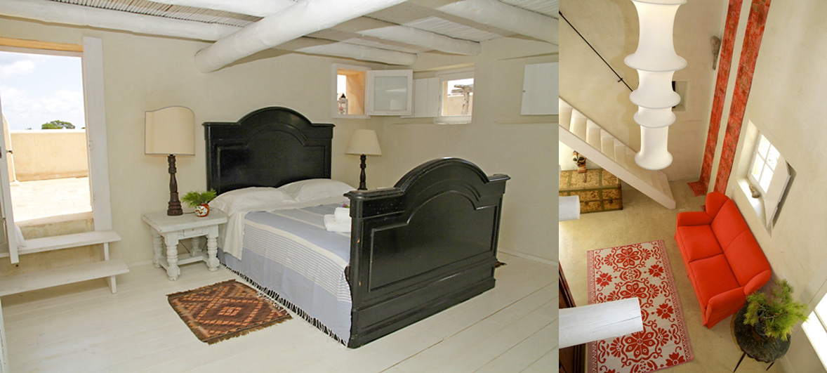 Casa Can Parra has 6 spacious bedrooms, each with ensuite bathrooms and private outdoor terraces. The main house consists of master bedroom with bathroom, double bedroom with bath, a suite on two levels with double bed + 1 single bed & bath, another suite on two levels with double bed & bath, and a twin single bedroom with bath. The separate guesthouse can accomodate 2 guests and has a double bedroom with bath.