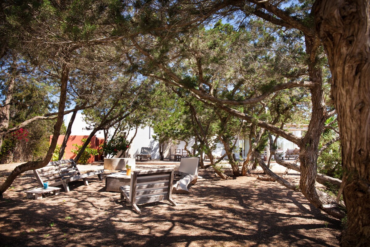 The casa is located in the area of Migjorn, 9 km from La Savina, 6 km from Sant Francesc and 2 km from Es Calo. 400m away from Migjorn beach & restaurants. Playa Es Calo is nearby if you want to try a different beach, and has various shops & restaurants . The main town of San Fransesc is 5 minutes by car or a short cycle ride away.