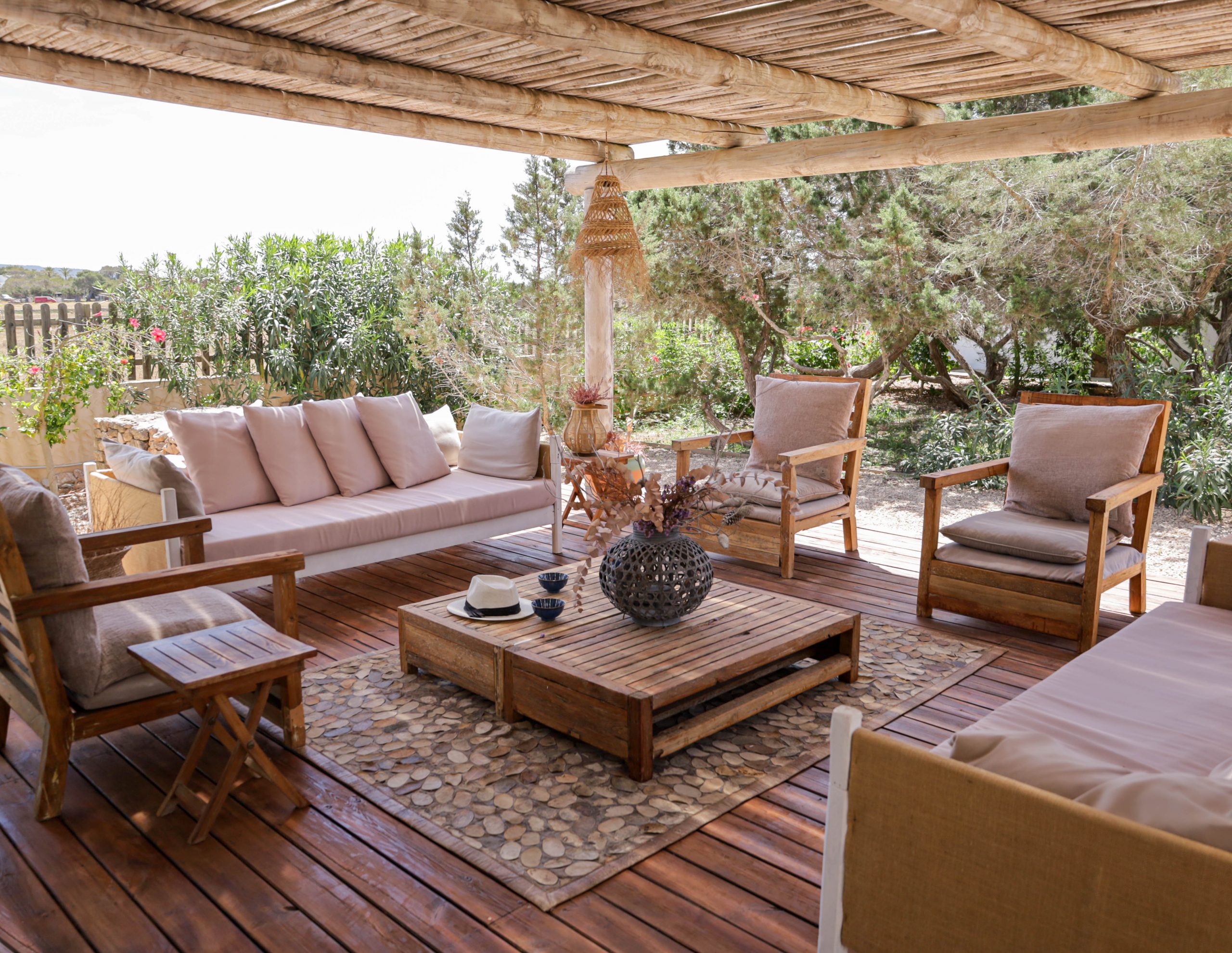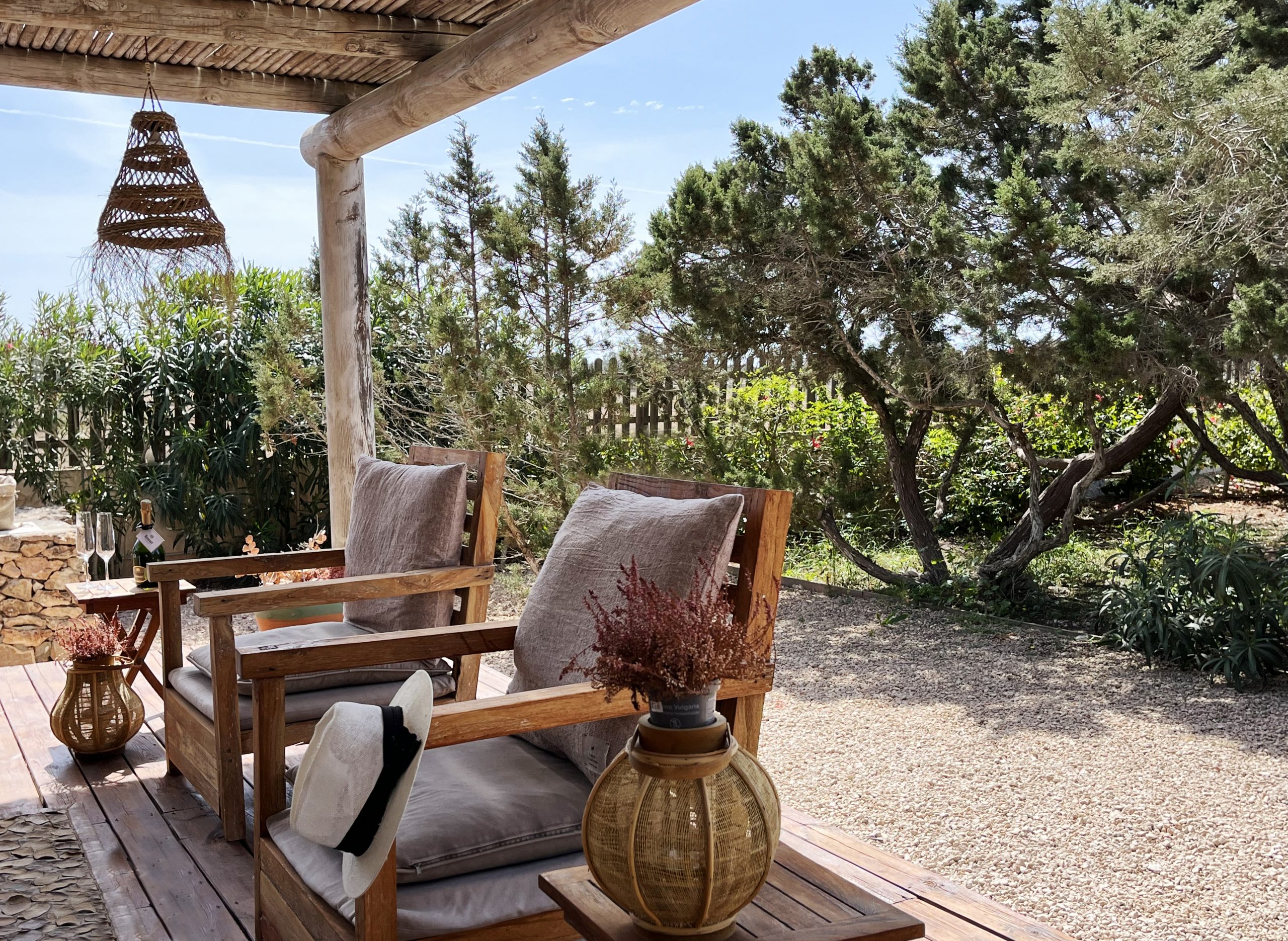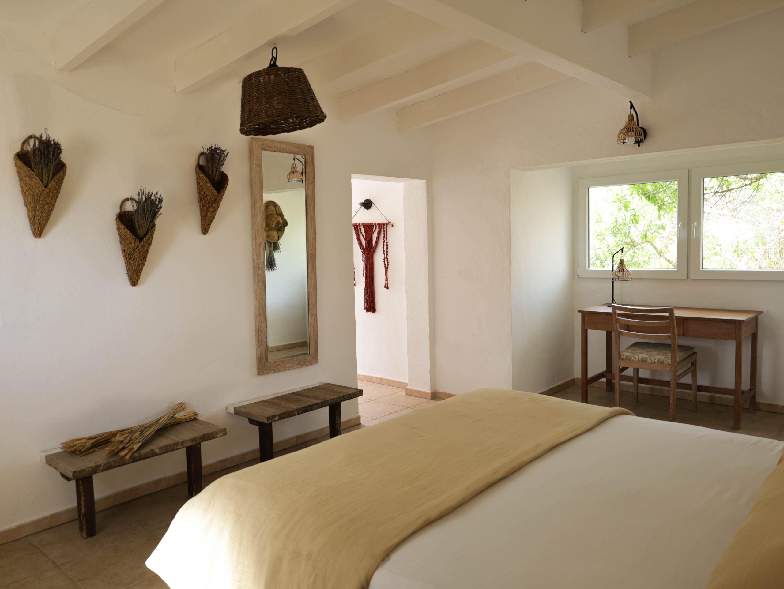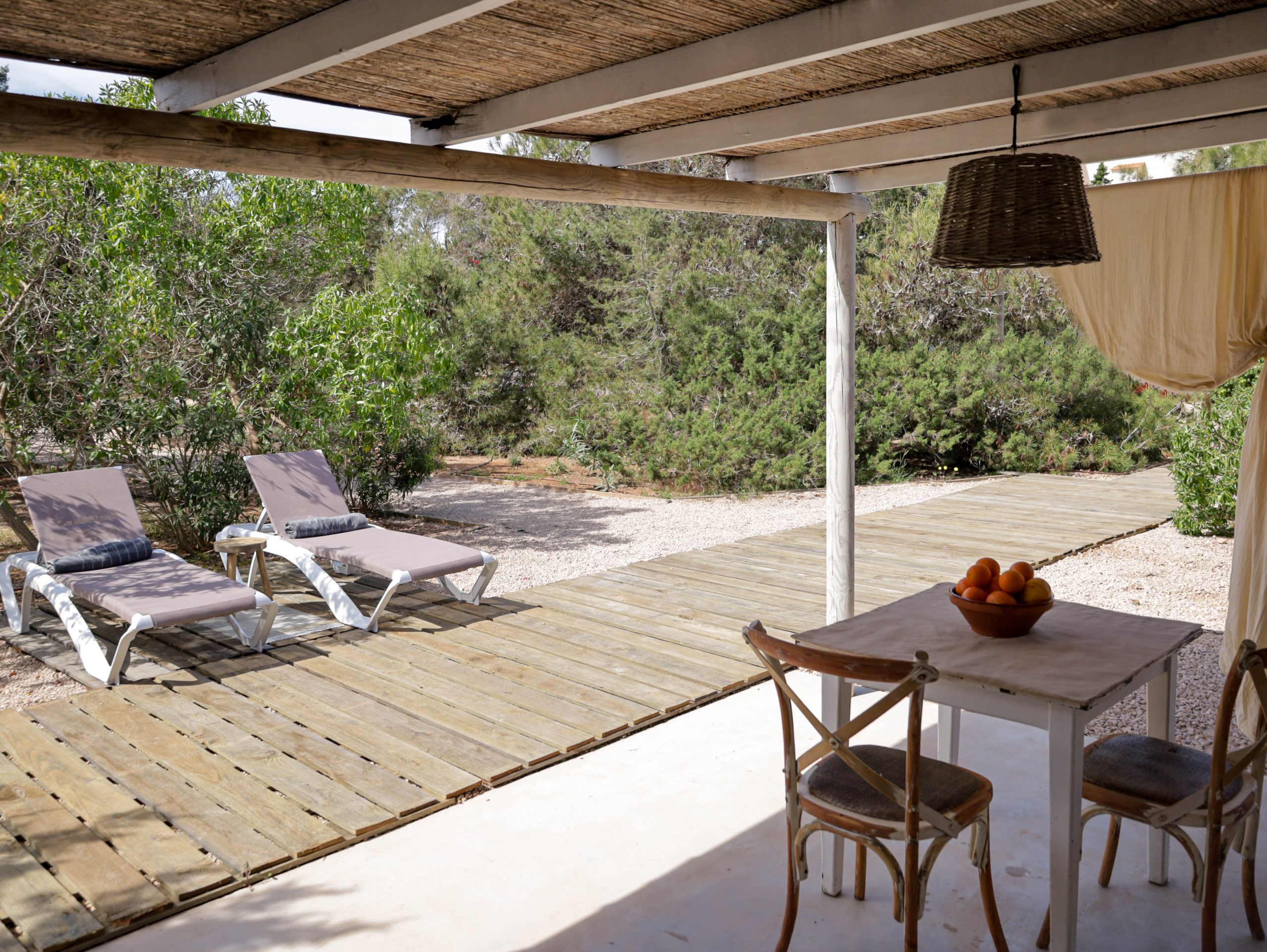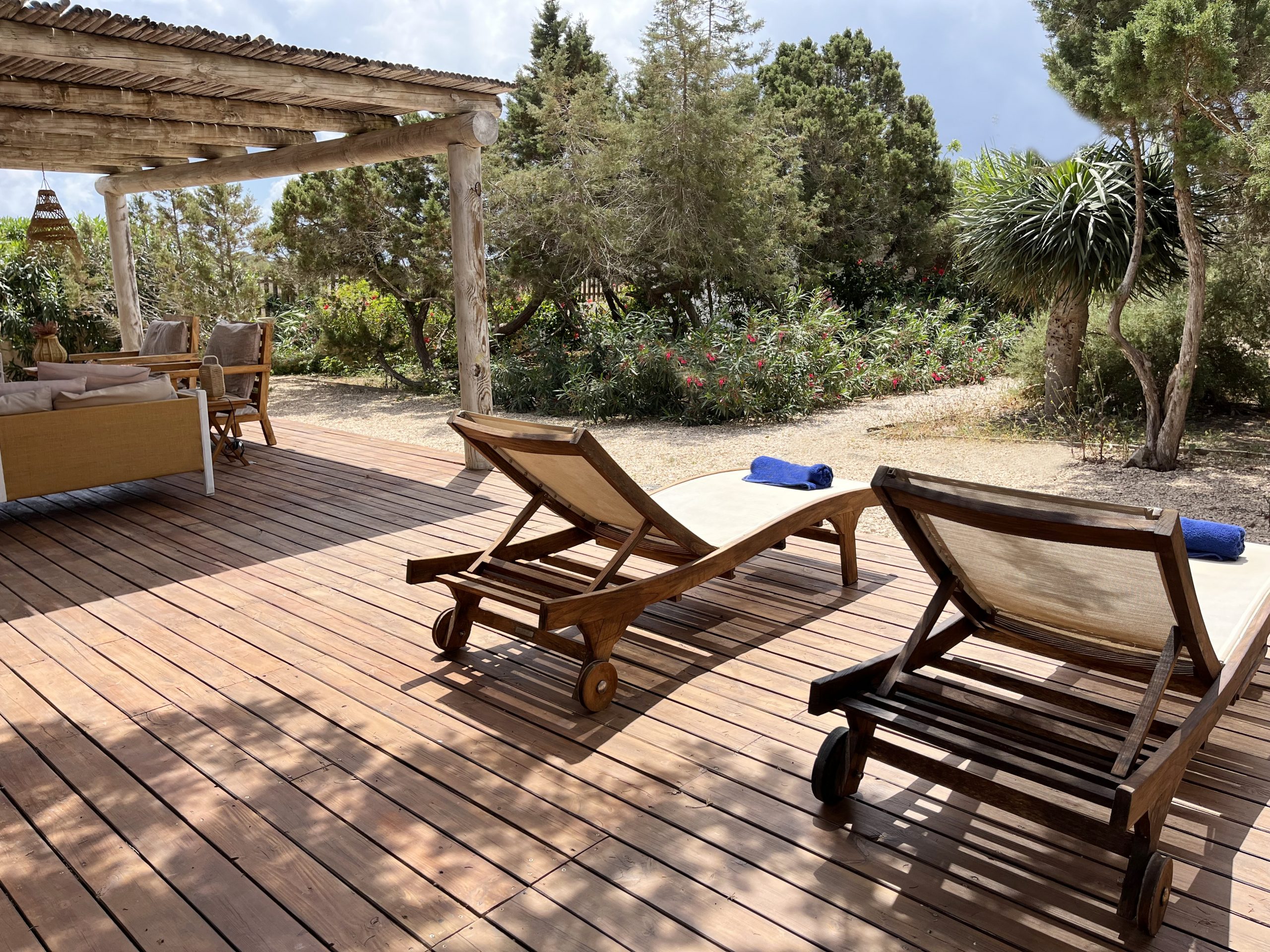 Surrounded by countryside with snippets of the sea and complete with pool, the property is a relaxing place to spend some time. There is plenty of outdoor space, and gardens with comfortable terraces and seating areas ideal for gazing at the spectacular Formentera starry night sky. Casa los Dragos feels like a world away, yet is only a short walk away (7-10 minute walk) from Playa Migjorn swimming beach.