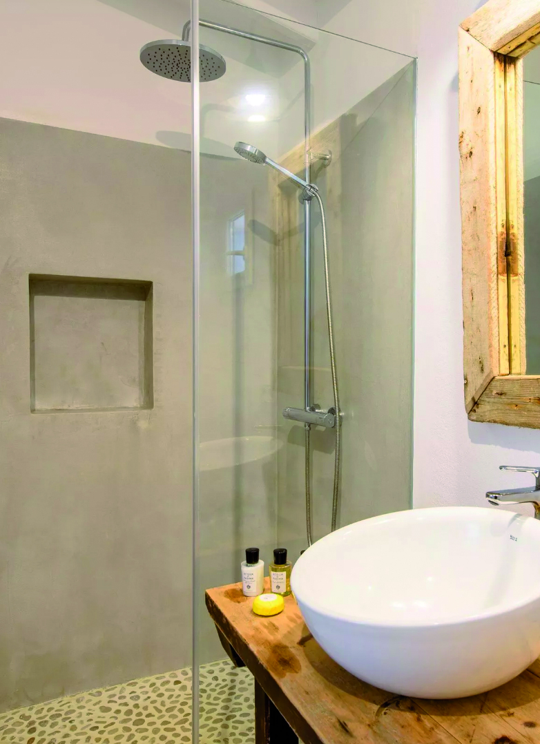 All 4 bedrooms feature AC units, internet access, private bathrooms, and all of them offer direct access to the terrace-solarium porch, garden, pool, and outdoor showers.